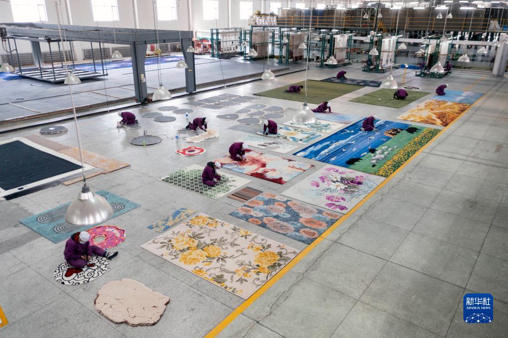 在青海省西寧市圣源地毯集團有限公司生產(chǎn)車(chē)間,操作工在制作地毯(2月4日攝)。