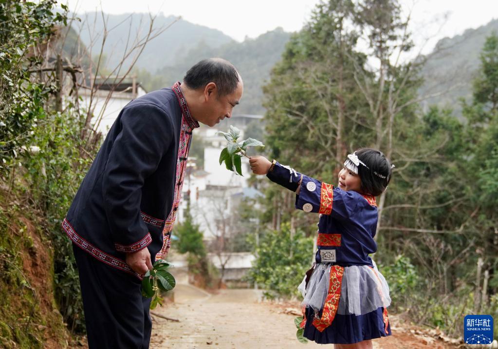 2月8日,學(xué)生趙羽舒將采摘的樹(shù)葉當成花朵送給鄧煙發(fā)。