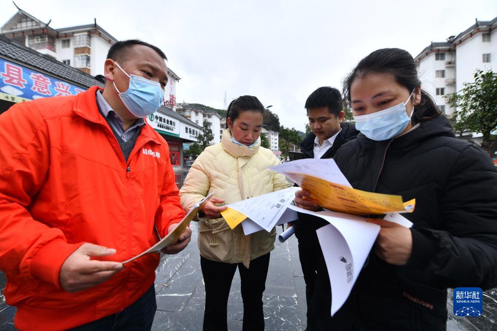 2月9日,在廣西融水苗族自治縣易地扶貧安置點(diǎn)苗美家園社區,求職者和招聘人員在交流。