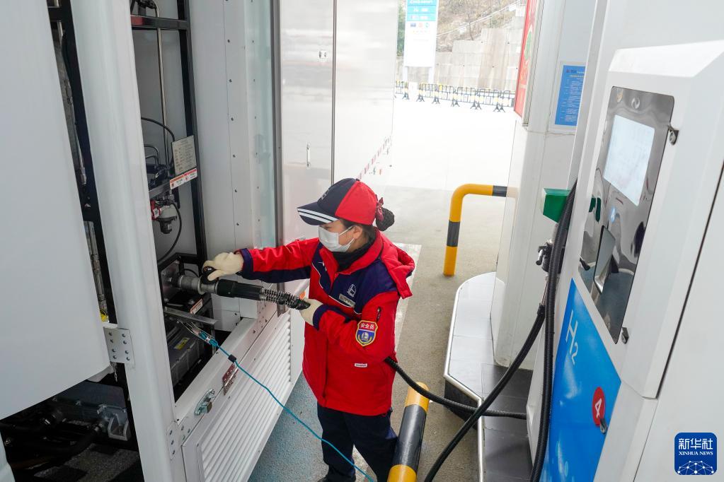 2月8日,在位于九龍坡區的重慶首座加氫站內,工作人員操作加氫設備為氫動(dòng)力商用車(chē)補充動(dòng)力。
