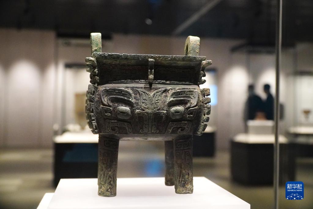 2月9日,在孔子博物館舉行的山東文物精品展上拍攝的山東博物館收藏的商代舉方鼎。
