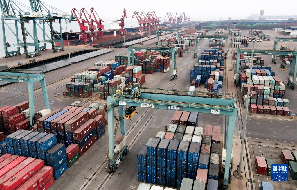 2月9日拍攝的黃驊港集裝箱碼頭(無(wú)人機照片)。