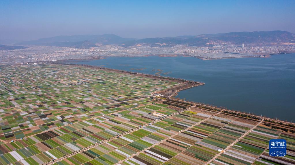 早春時(shí)節,云南省玉溪市通??h田園風(fēng)光秀美。五彩斑斕的農田與湖水、山巒交相輝映,構成了一幅美麗的畫(huà)卷。新華社記者 胡超 攝