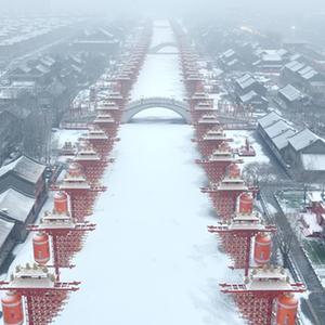 雪后的唐山市豐南區河頭老街景色(2月10日攝,無(wú)人機照片)。
