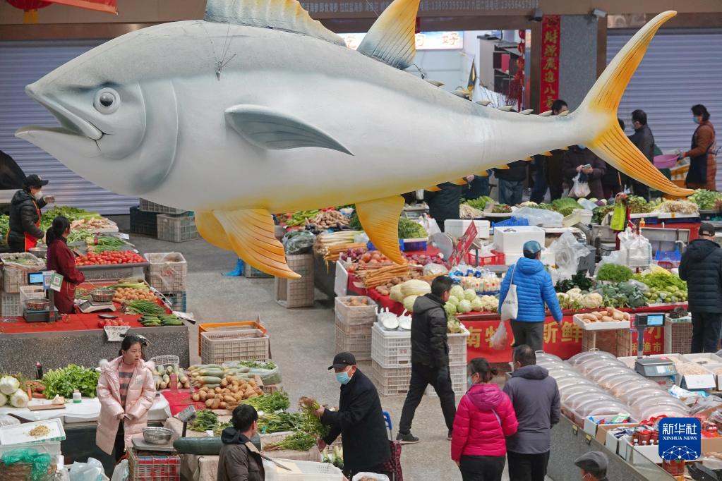 2月10日,市民在山東省煙臺市紅利市場(chǎng)買(mǎi)菜。