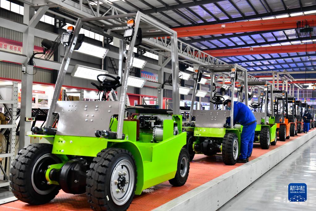 2月10日,一企業(yè)工作人員在電動(dòng)叉車(chē)作業(yè)生產(chǎn)線(xiàn)忙碌。