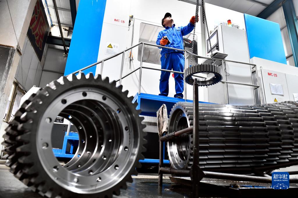 2月10日,一企業(yè)工作人員在加工傳動(dòng)齒輪。