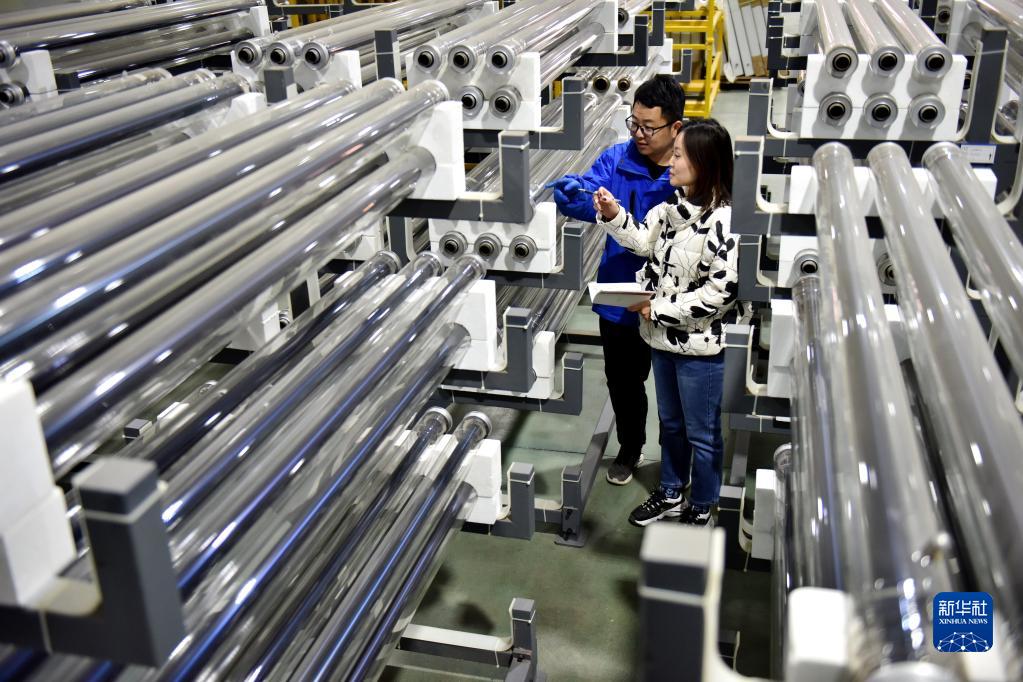 河北威縣高新區管委會(huì )工作人員(右)在一家新能源科技有限公司實(shí)地走訪(fǎng)(2月3日攝)。