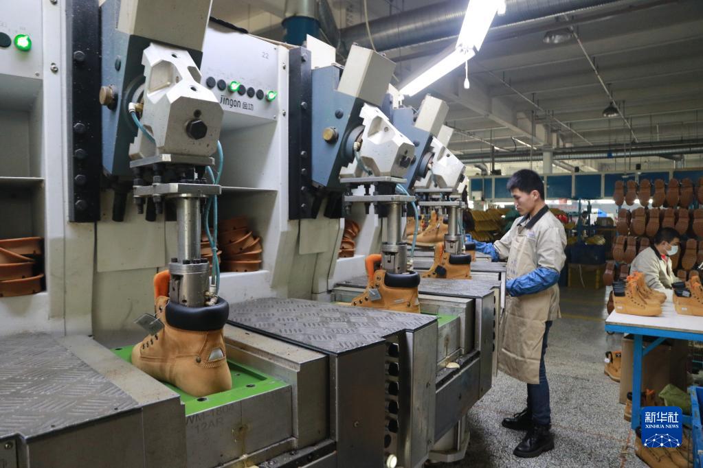 2月10日,工人在山東省高密市朝陽(yáng)街道一家制鞋企業(yè)的車(chē)間內忙碌。