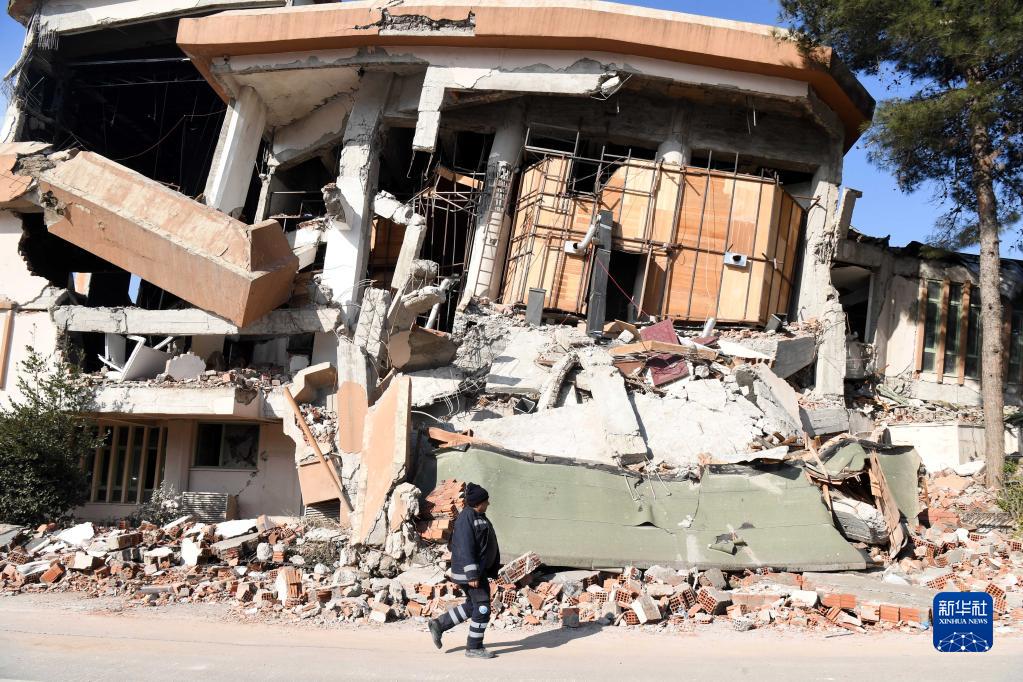這是2月10日在土耳其哈塔伊省安塔基亞市拍攝的遭地震損毀的建筑。