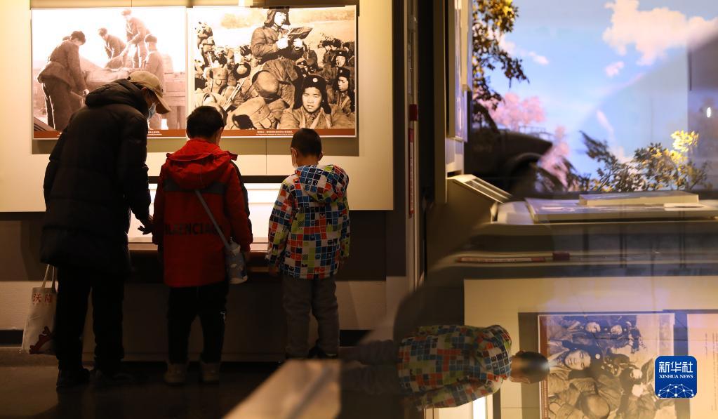 2月10日,小朋友跟隨家長(cháng)在雷鋒紀念館里參觀(guān)。
