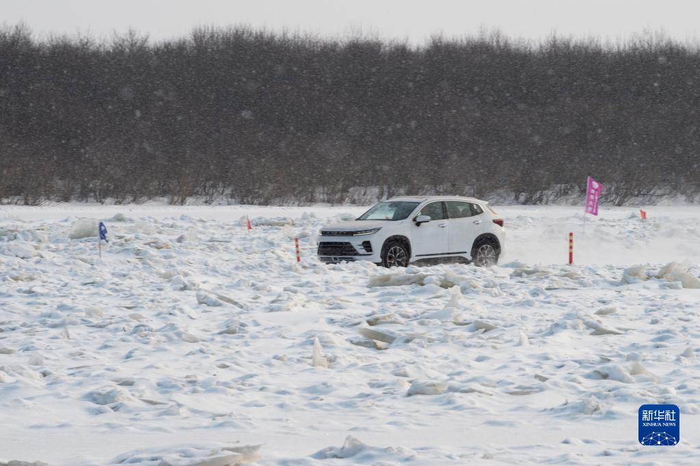 2月10日,在黑河小烏斯力測試基地,車(chē)輛進(jìn)行寒區試驗。