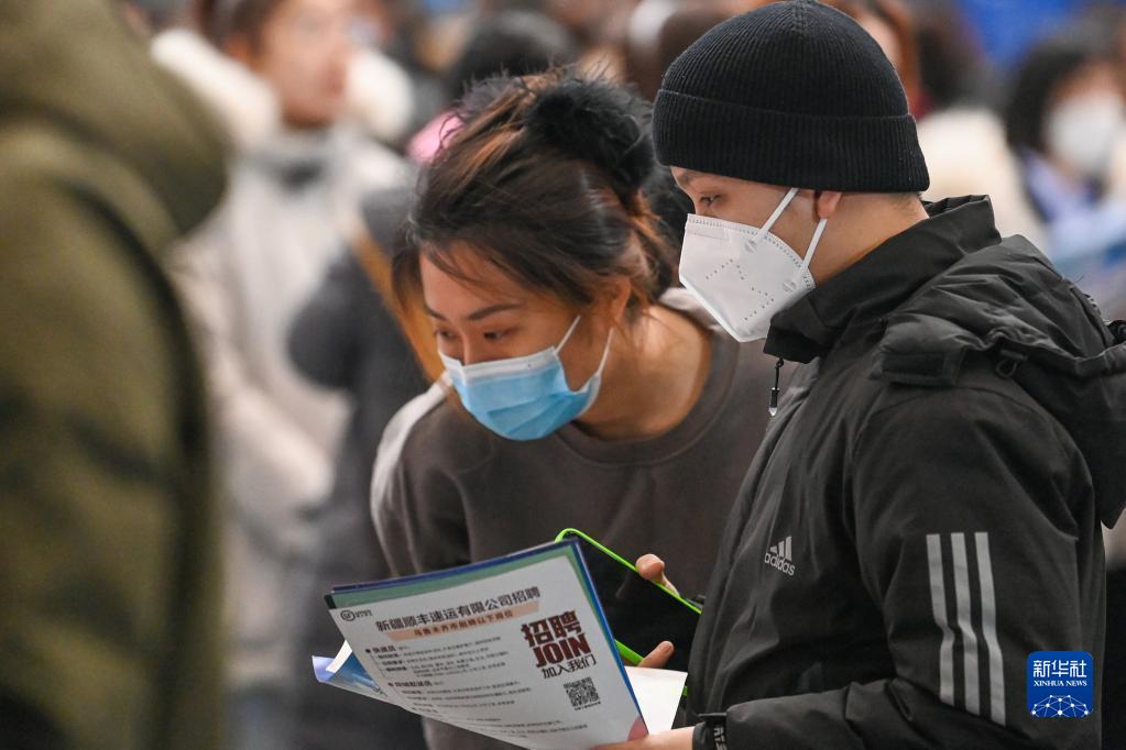 2月11日,在新疆國際會(huì )展中心舉行的2023新疆春季人才交流會(huì )上,求職者了解崗位情況。