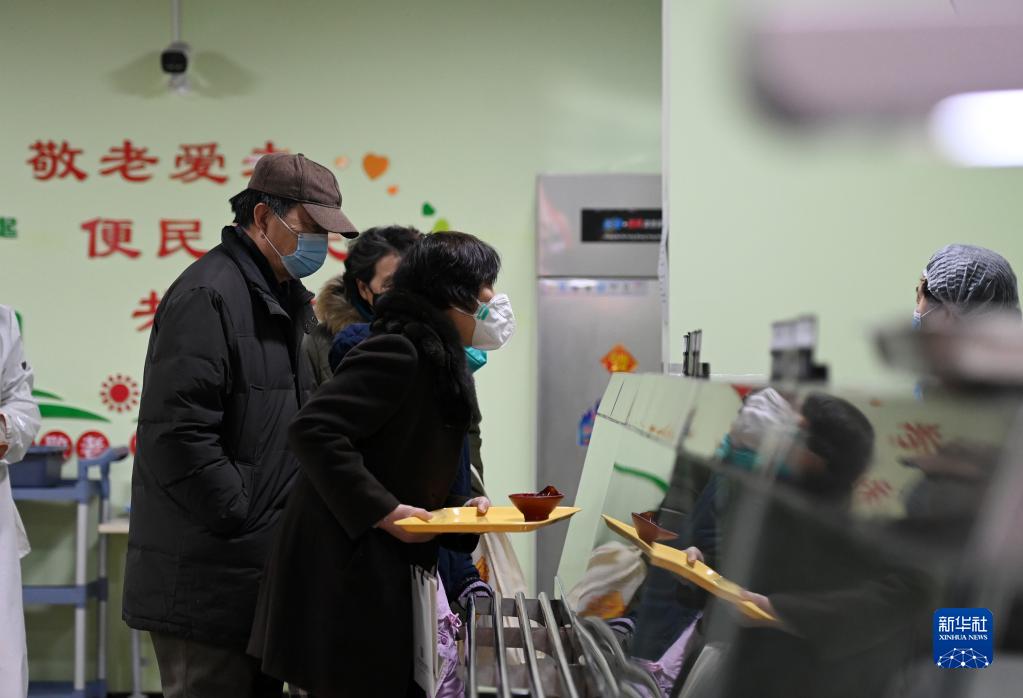 老人在天津市和平區南營(yíng)門(mén)街道的老年人“智慧食堂”取餐(2月10日攝)。