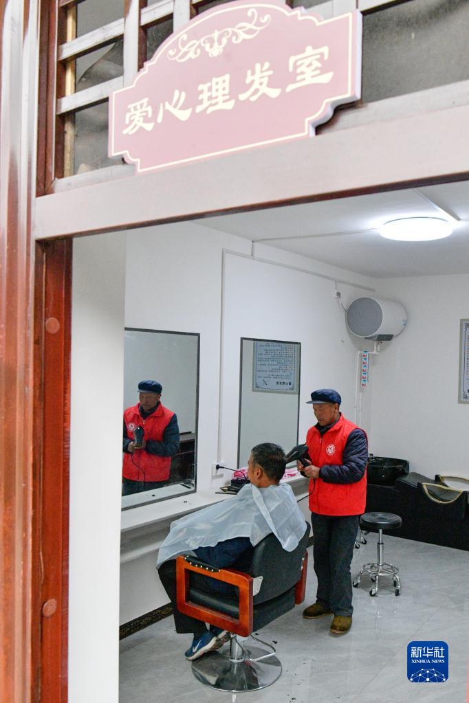 在隴南市宕昌縣官亭鎮王家村“幸福家園”,村民在理發(fā)室理發(fā)(2月8日攝)。
