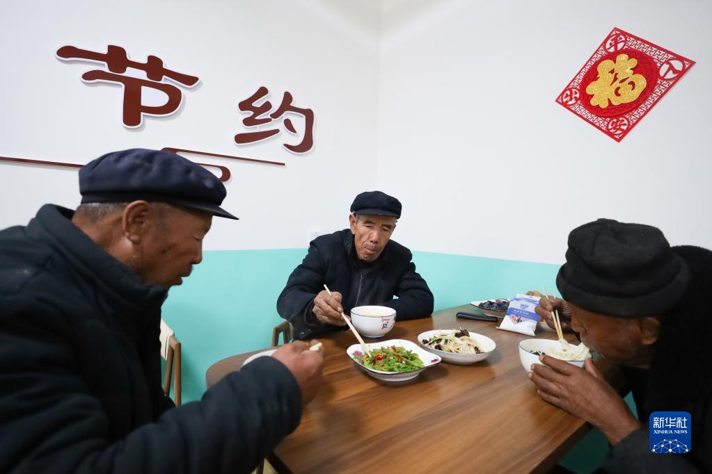 在隴南市宕昌縣官亭鎮王家村“幸福家園”,村民在食堂吃飯(2月8日攝)。