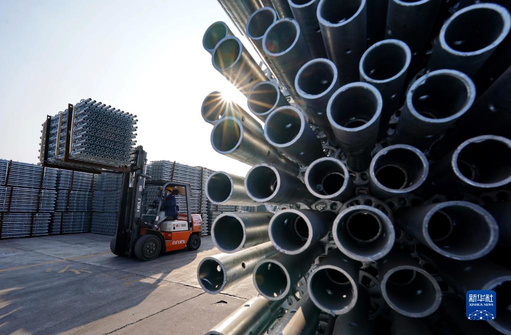 2月10日,唐山市海港經(jīng)濟開(kāi)發(fā)區一家支護裝備企業(yè)的工人駕駛叉車(chē)碼放產(chǎn)品。
