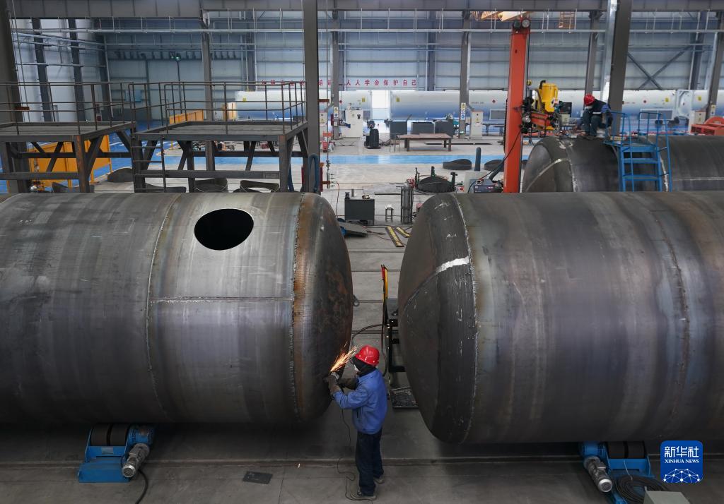 2月11日,工人在河北省唐山市海港經(jīng)濟開(kāi)發(fā)區一家裝備制造企業(yè)生產(chǎn)車(chē)間工作。