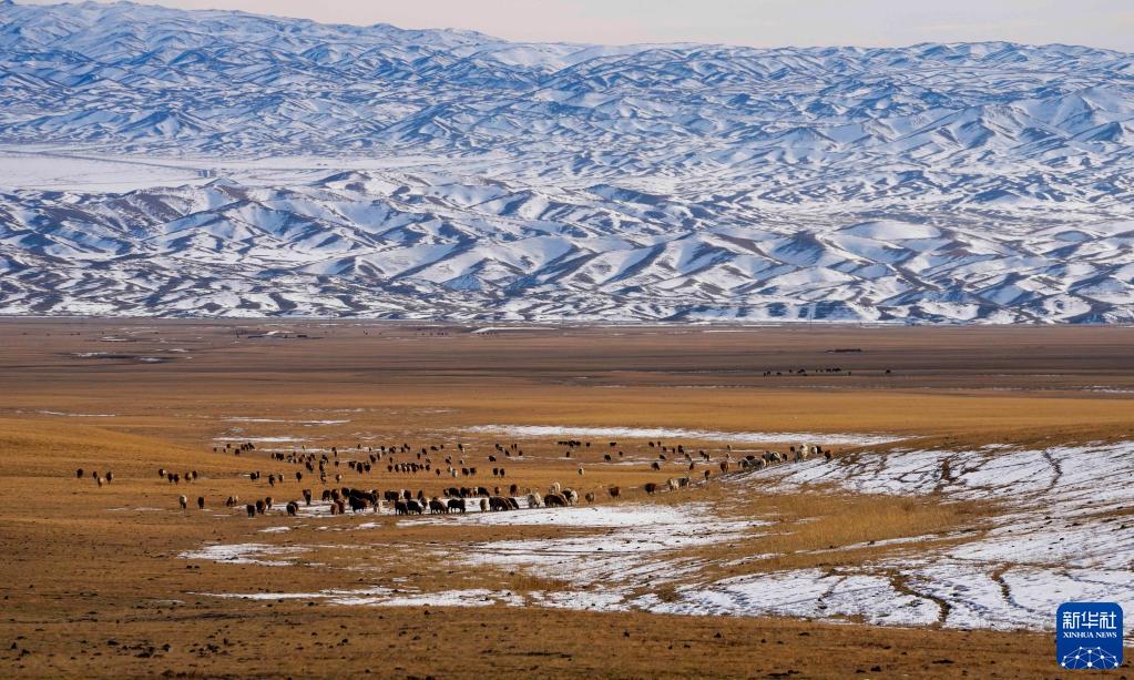 羊群在新疆裕民縣巴爾魯克山冬季牧場(chǎng)覓食(2022年11月4日攝)。新華社發(fā)(陳雙喜 攝)