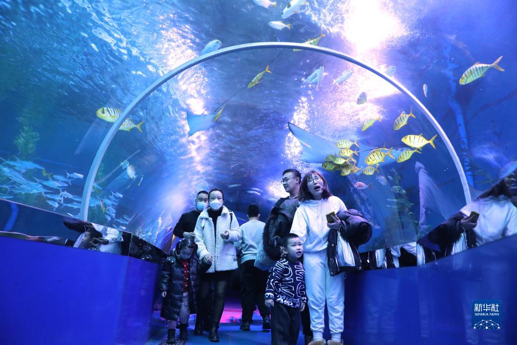 2月11日,小朋友們跟隨家長(cháng)在沈陽(yáng)皇家海洋樂(lè )園里參觀(guān)。