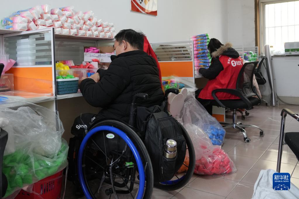 2月12日,在山東鄒城市中心店鎮如康家園內,殘疾人在進(jìn)行彩色橡皮泥生產(chǎn)加工。