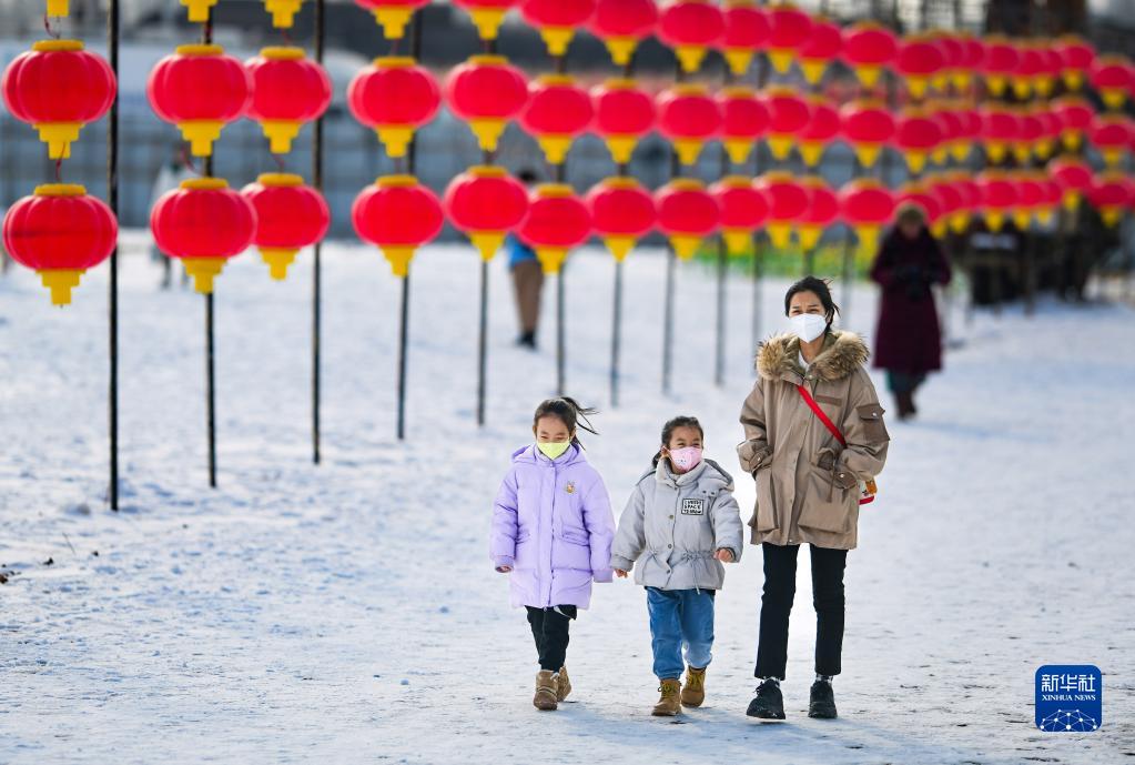 2月12日,游客在呼和浩特冰雪節冰雪景區漫步。