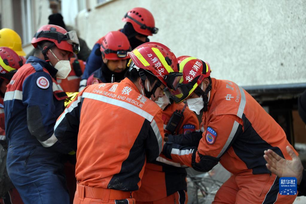 當地時(shí)間12日下午,正在土耳其哈塔伊省安塔基亞市實(shí)施搜救的中國救援隊營(yíng)救出一名幸存者。