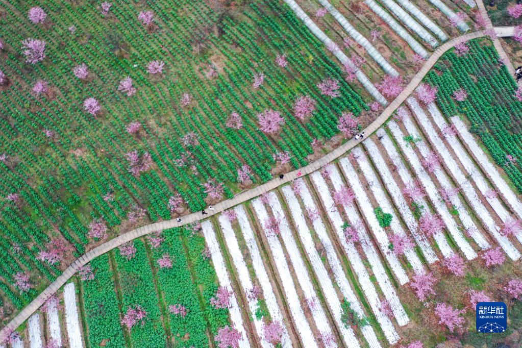 2月12日,游人在四川省瀘州市江陽(yáng)區丹林鎮建設村的“櫻花谷”游玩。
