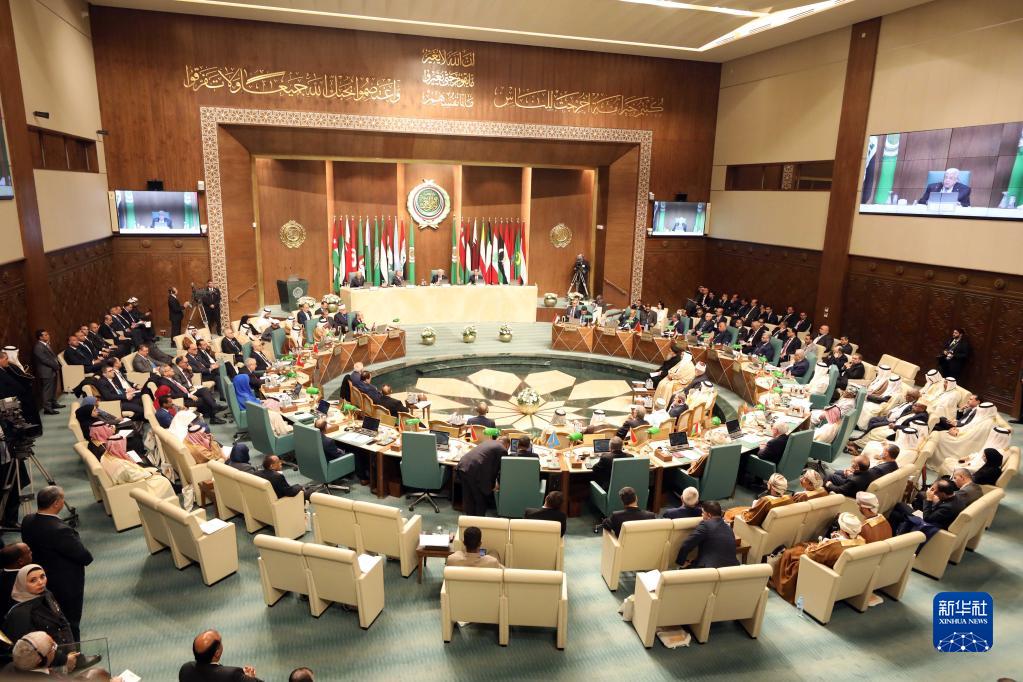 這是2月12日在位于埃及首都開(kāi)羅的阿拉伯聯(lián)盟總部拍攝的會(huì )議現場(chǎng)。