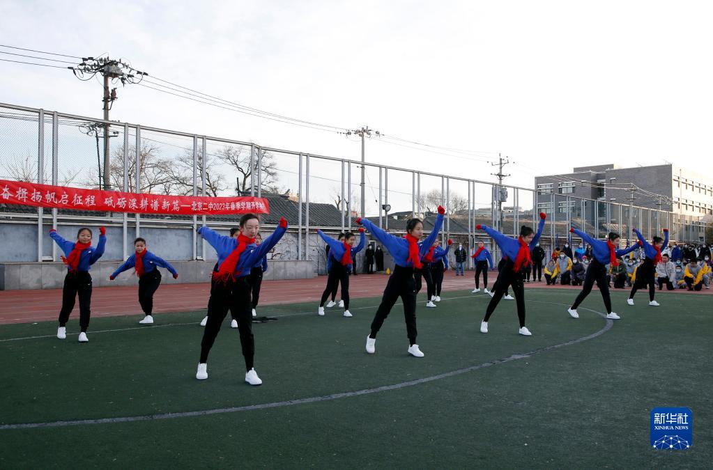 2月13日,北京二中學(xué)生在新學(xué)期開(kāi)學(xué)典禮上表演舞蹈《奔向未來(lái)》。