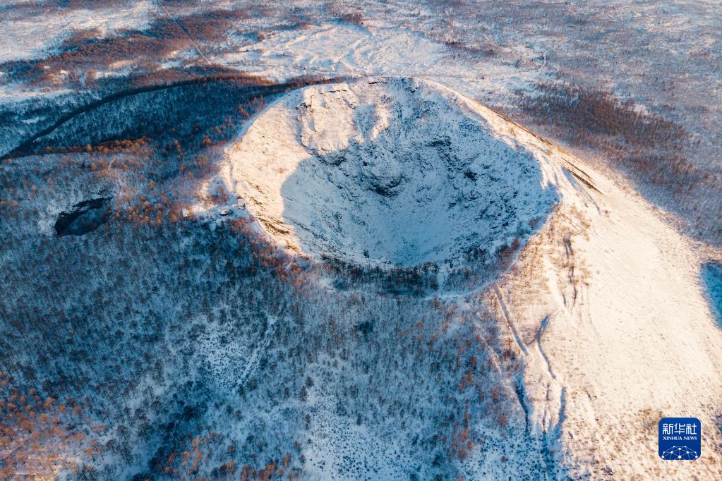 五大連池世界地質(zhì)公園老黑山火山口景色(2月12日攝,無(wú)人機照片)。