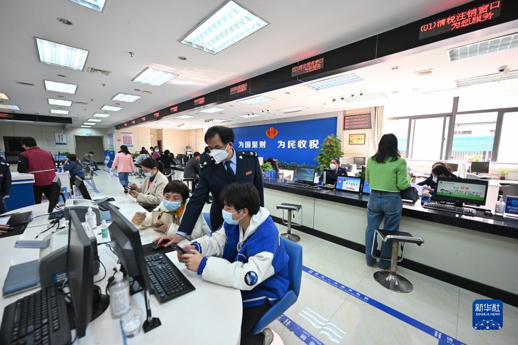 2月13日,在福州市閩清縣辦稅服務(wù)大廳,工作人員幫助企業(yè)工作人員辦理業(yè)務(wù)。
