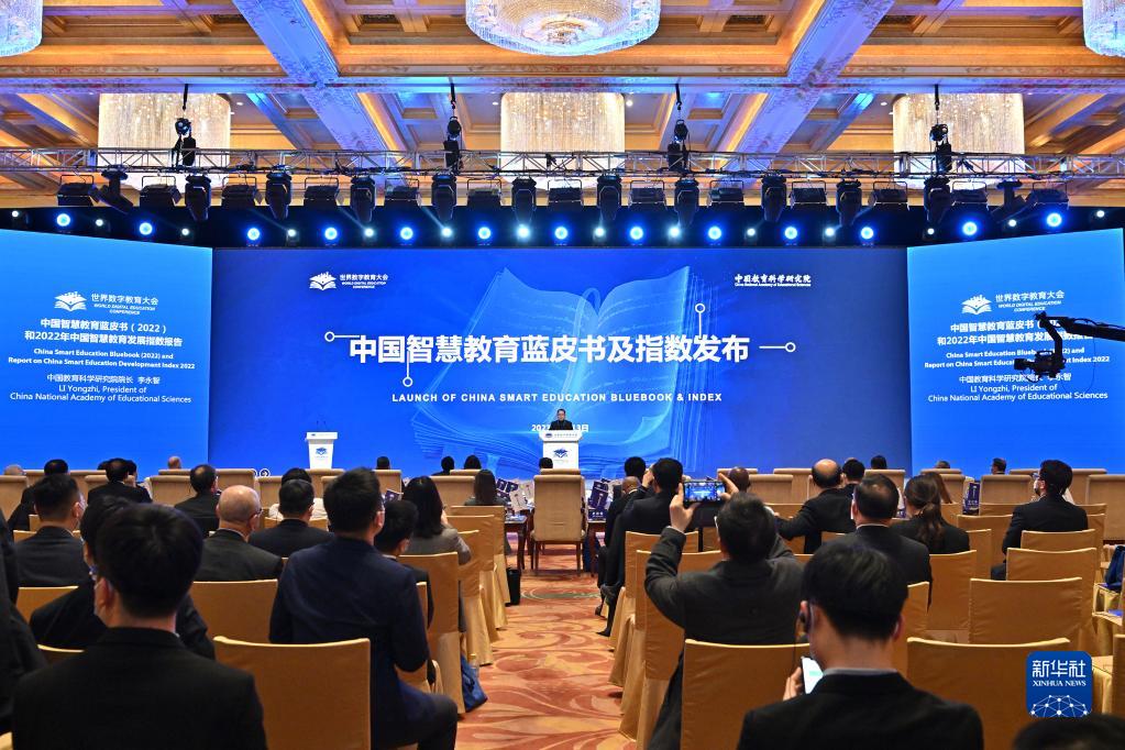 這是2月13日在世界數字教育大會(huì )上拍攝的《中國智慧教育藍皮書(shū)(2022)》與2022年中國智慧教育發(fā)展指數報告發(fā)布現場(chǎng)。