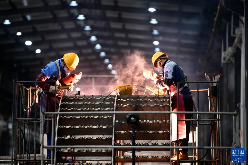 2月13日,在江西省贛州市一科技裝備公司,工人在生產(chǎn)車(chē)間趕制訂單產(chǎn)品。