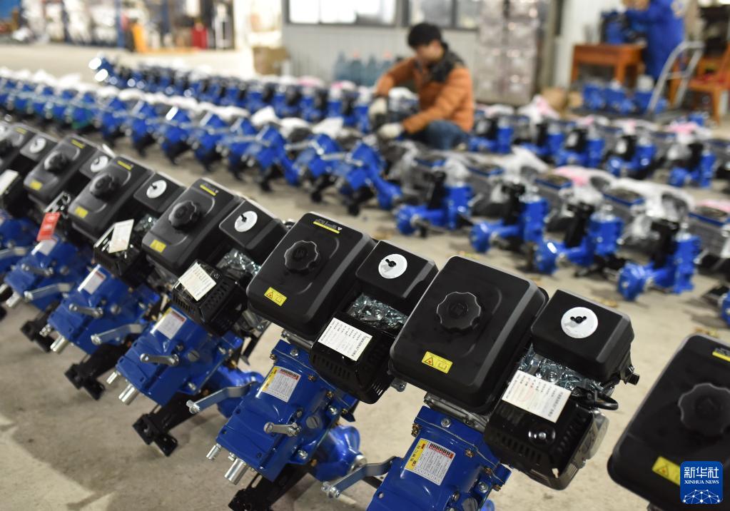 2月12日,在湖南省婁底市雙峰高新區一家農機制造企業(yè),工人在裝配微耕機。