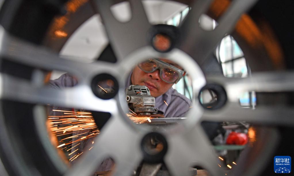 2月13日,浙江省臺州市仙居縣一車(chē)業(yè)公司車(chē)間,工人進(jìn)行汽車(chē)零配件打磨作業(yè)。