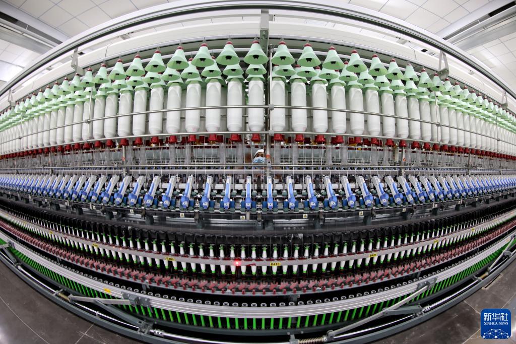 2月11日,山東省棗莊市一新材料公司的職工在加工高端紗線(xiàn)。