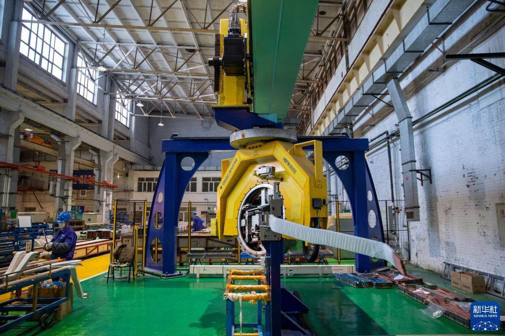 這是2月13日在哈電集團哈爾濱電機廠(chǎng)有限責任公司生產(chǎn)車(chē)間內拍攝的正在運行的定子線(xiàn)棒自動(dòng)成型機。