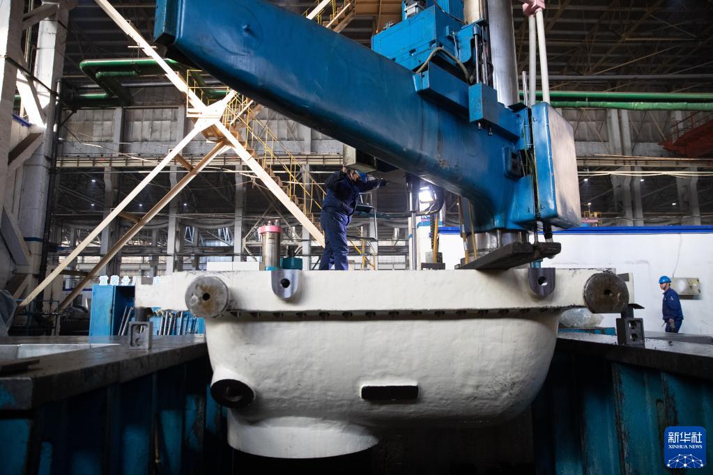 2月13日,工人在哈電集團哈爾濱汽輪機廠(chǎng)有限責任公司生產(chǎn)車(chē)間內作業(yè)。新華社記者 張濤 攝