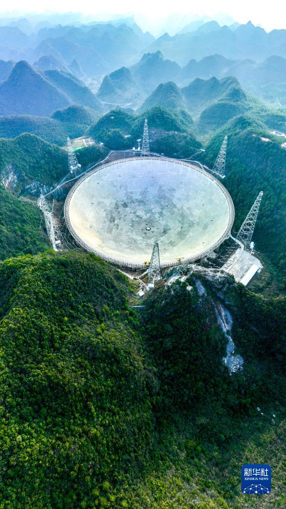 2月13日拍攝的“中國天眼”全景(維護保養期間拍攝,無(wú)人機照片)。