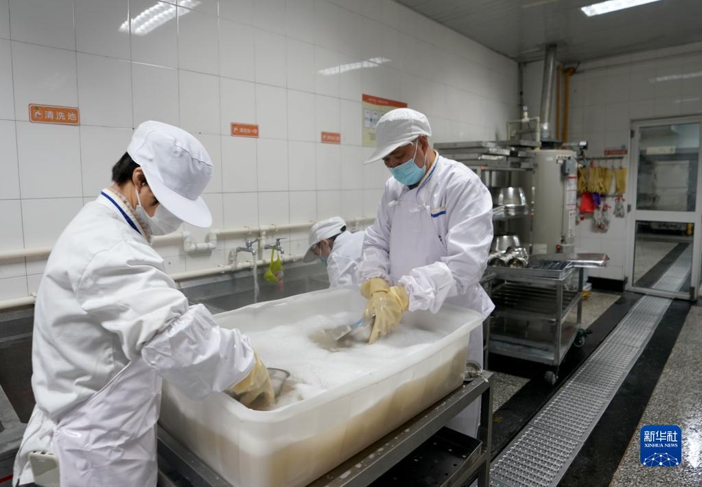 2月13日,上海市長(cháng)寧區天山第一小學(xué)的食堂員工在整理后廚。
