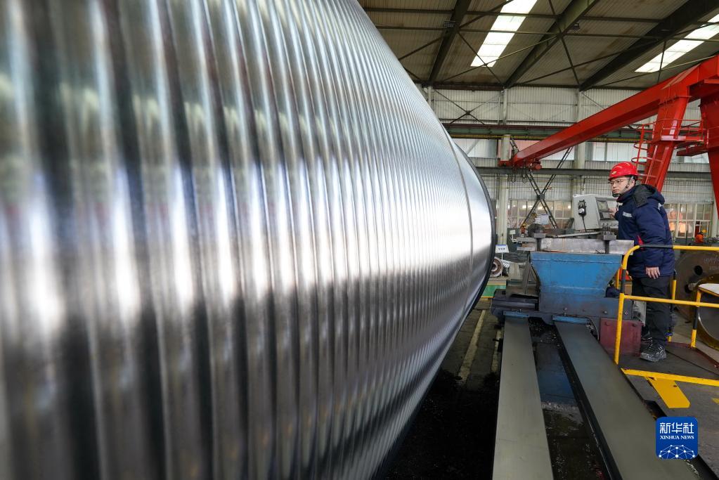 2月14日,工人在唐山市豐潤區一家起重設備制造企業(yè)的生產(chǎn)車(chē)間工作。