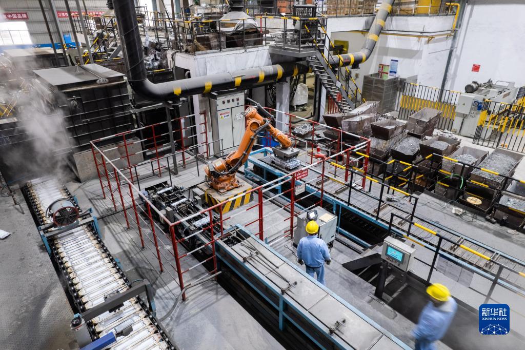 2月14日,在位于株洲市淥口經(jīng)開(kāi)區南洲工業(yè)園的湖南株冶火炬新材料有限公司,工作人員在生產(chǎn)鋅基合金產(chǎn)品(無(wú)人機照片)。