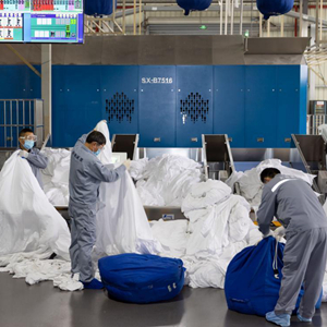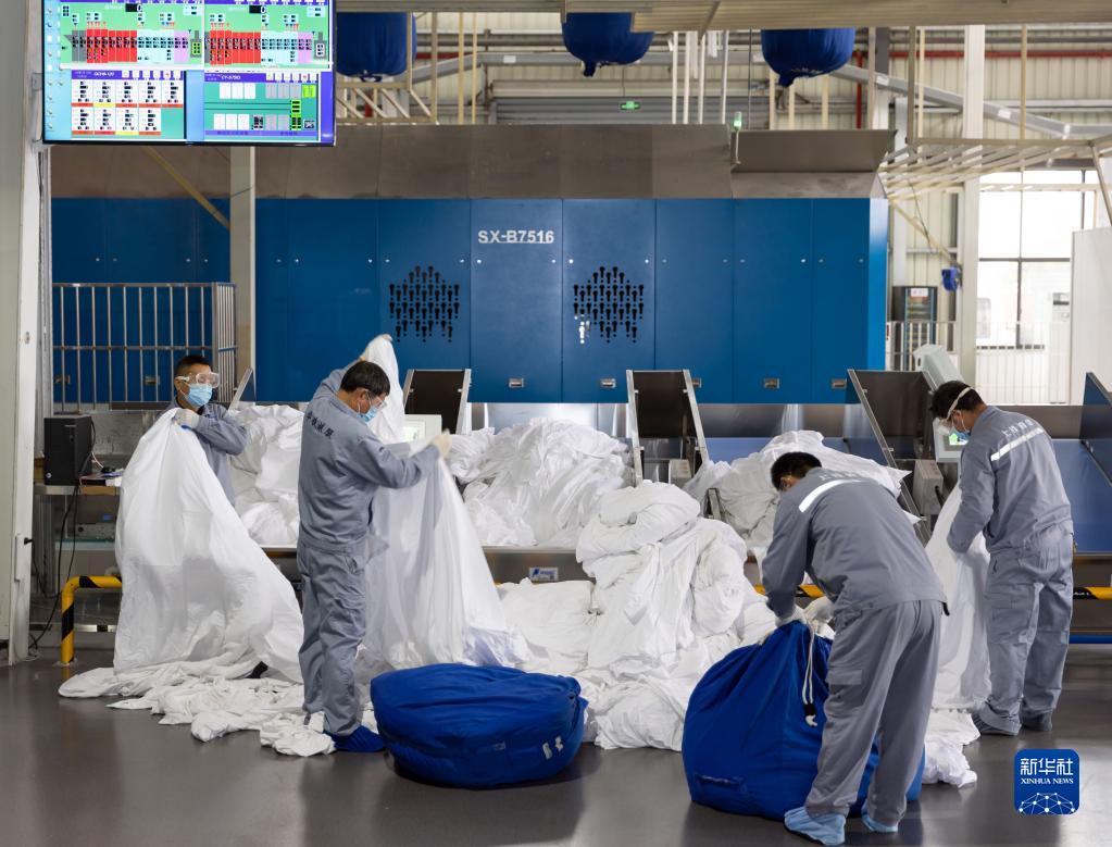 2月14日,分揀員根據布草潔凈程度進(jìn)行分揀歸類(lèi)。