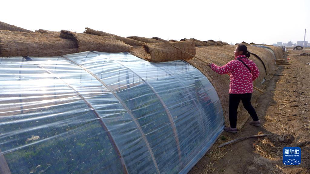 2月15日,河南省開(kāi)封市禹王臺區汪屯鄉松樓村農民在地里管理蔬菜大棚。