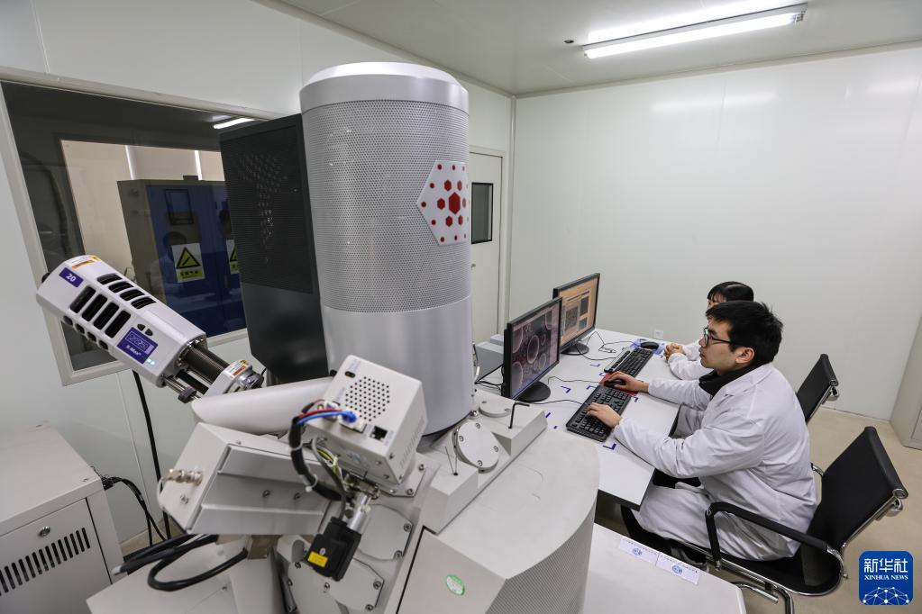 江蘇省先進(jìn)碳材料分析測試中心的技術(shù)人員在掃描電子顯微鏡實(shí)驗室做測試(2月14日攝)。