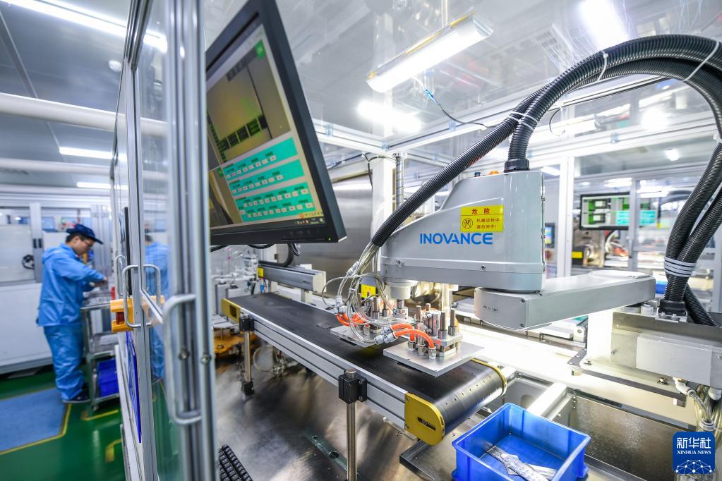 在常州富烯科技股份有限公司生產(chǎn)車(chē)間,工人在生產(chǎn)線(xiàn)上生產(chǎn)加工石墨烯導熱膜(2月14日攝)。