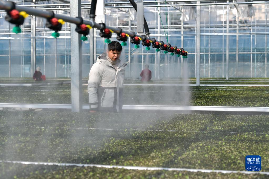 2月15日,在貴州省從江縣貫洞鎮淫羊藿育苗基地,工人利用自動(dòng)噴灌系統給淫羊藿苗澆水。