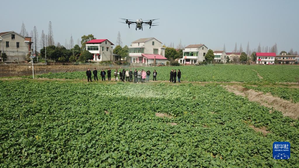 2月15日,在沅江市共華鎮福安村,學(xué)員們在農業(yè)植保無(wú)人機操作員培訓班上觀(guān)看無(wú)人機噴灑演示(無(wú)人機照片)。