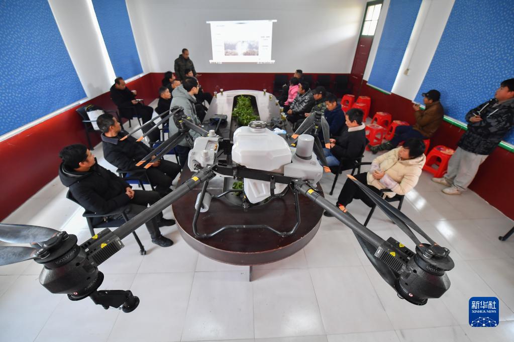 2月15日,在沅江市共華鎮福安村,學(xué)員們在農業(yè)植保無(wú)人機操作員培訓班上學(xué)習理論知識。
